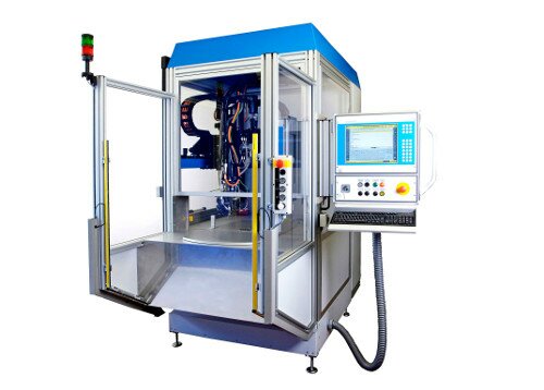 As an alternative to the rotary indexing table, there is a version where the parts are directly inserted on a worktop into the cell. In this case, a lift gate is attached to the front of the cell. It is also possible to feed the parts via a transfer belt running through the cell.